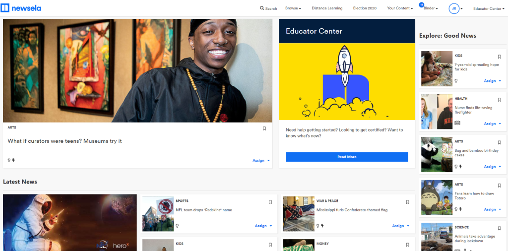 NewsELA also has multiple-choice and short-answer questions for every single article, which can be handy if you want to check for students’ understanding. You can even set up (or import from elsewhere) a virtual classroom within the program, allowing you to assign articles at the different Lexile levels based on where your individual students are at. They also have a pretty extensive Educator Center, providing lessons and suggestions on how to use different articles.